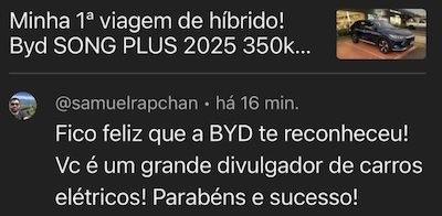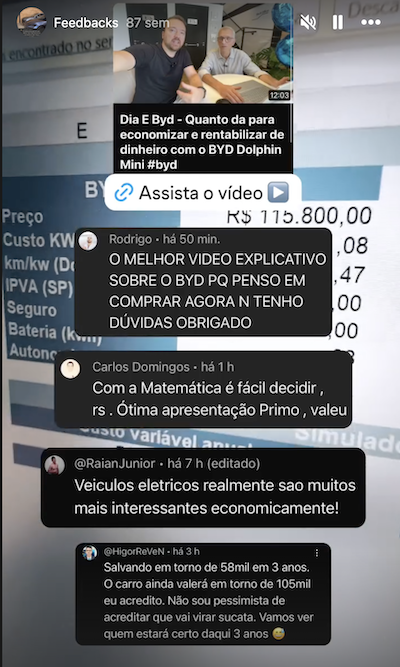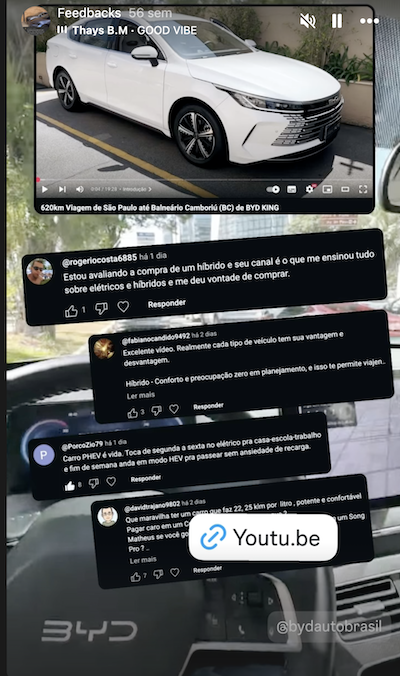 Com isso, centenas de pessoas entraram para o universo dos carros eletrificados com mais segurança e confiança. Muitas delas compartilham aqui suas experiências e satisfação com a decisão tomada.